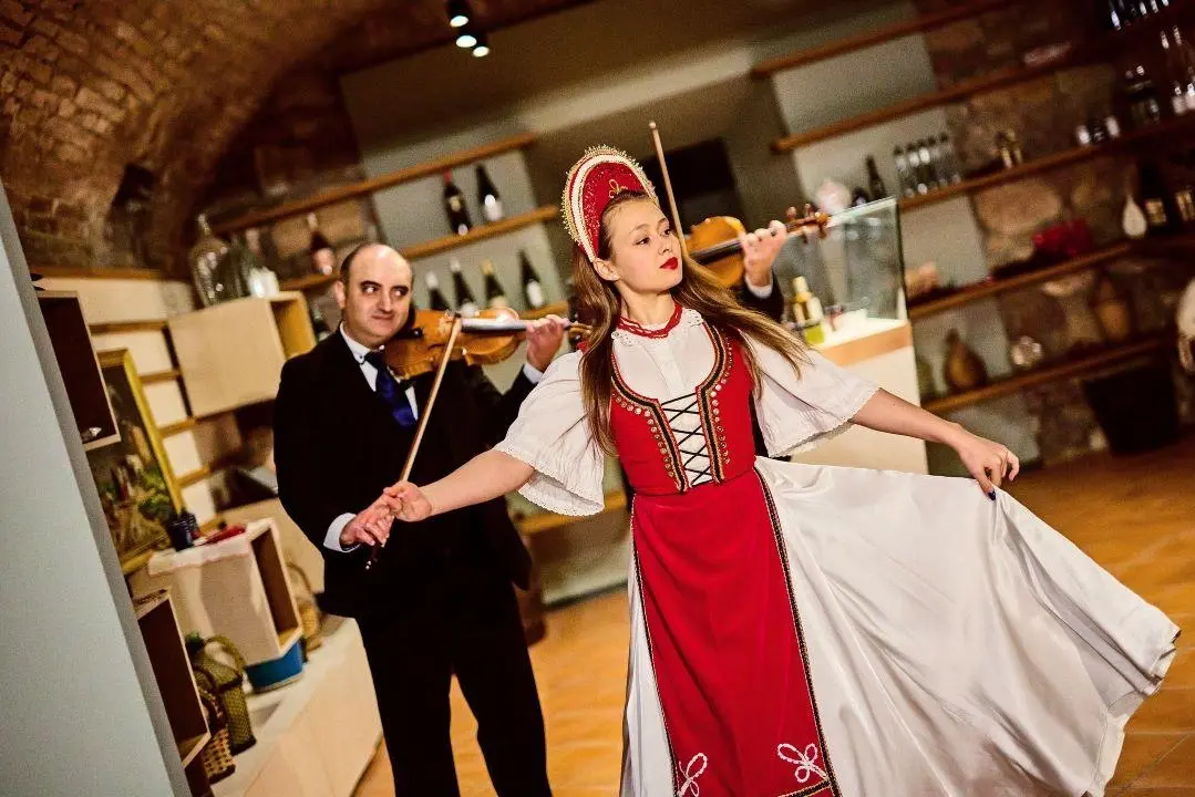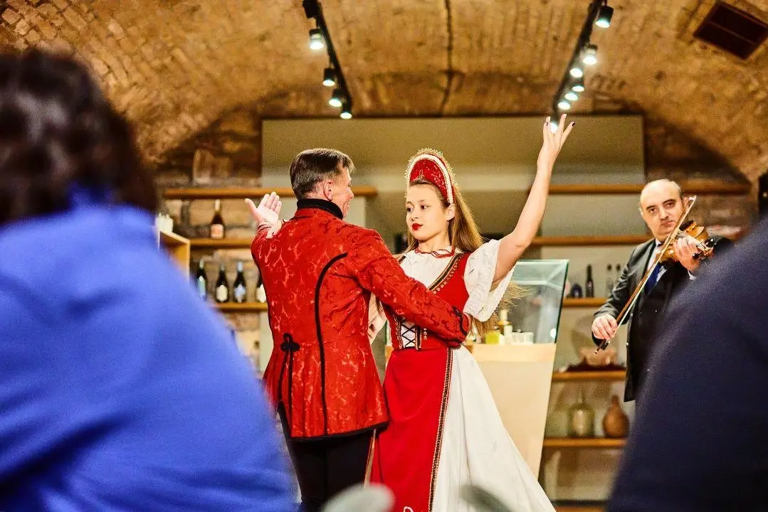 Aki ellátogat a Hungarian GastroCellarba, és ott felejti a szemét a színpadon, teljesen más dimenzióval szembesül. Hiszen a néptánc olyan hagyomány, amely bár szabályozott formájában a XVI. századig vezethető vissza, a mai emberben ugyanazokat a képeket hívja életre, mint a fél évezreddel ezelőtt élőkben. A néptánc időtlen önkifejező eszköz, amely egyetemes gesztusokkal és motívumokkal dolgozik, alapját pedig az a lüktető, repetitív zene adja, melynek hallatán szabad akarattól függetlenül dobban a láb. A Magyar Állami Népi Együttes, Duna Művészegyüttes, Rajkó Népi Együttes és Zenekar a magyar zenei élet kiemelkedő képviselői. Koreográfiájuk autentikus táncanyagra épül, melyek évszázadokra visszanyúló mozdulatsorok felhasználásával dolgozzák fel az elzárt falvak féltve őrzött hagyományait. Az előadott táncok a közönséget a magyarlakta területek zene- és tánckultúrájával ismertetik meg. Izgalmas program, nagy felismerésekkel.