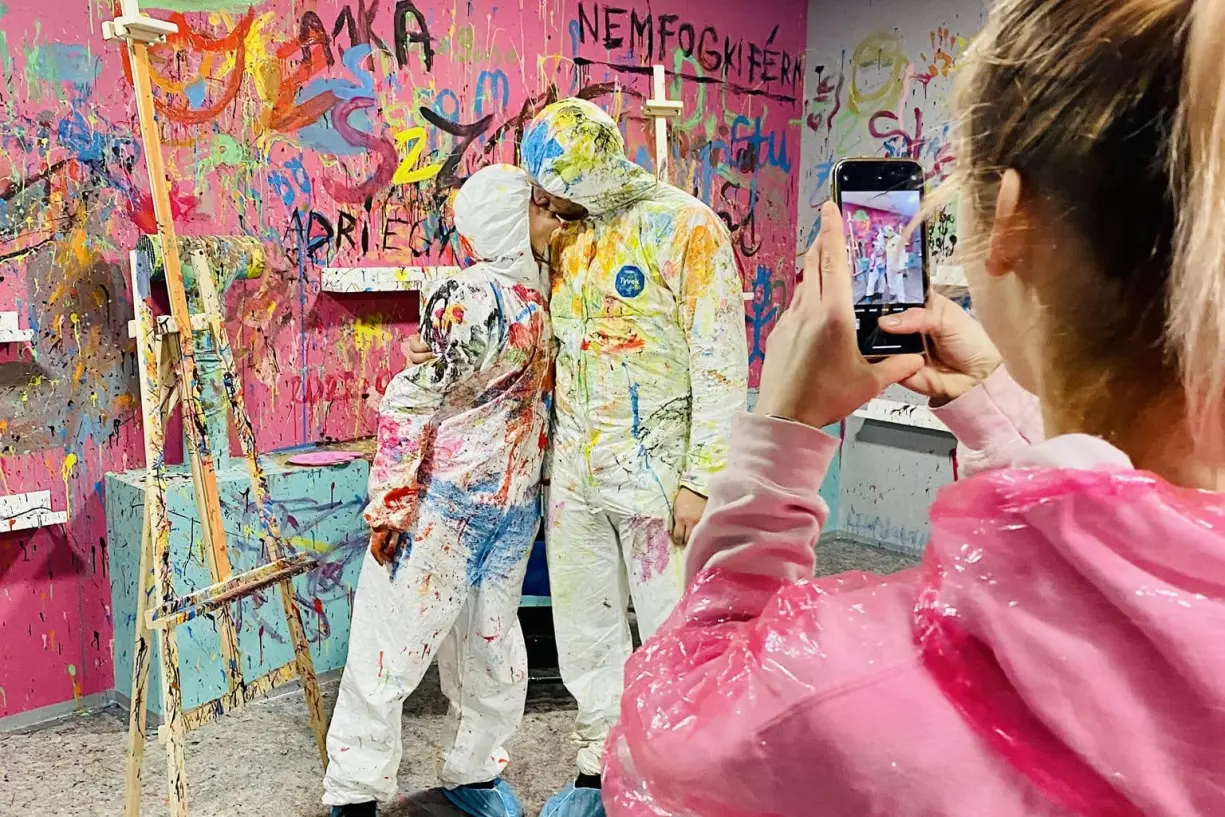 Egészen gyerekkorunktól kezdve vágyjuk az élményt, hogy ne kelljen keretek közé szorítanunk a zabolázatlan alkotóenergiát. Jó hírünk van, hiszen ezen a programon - ahol az élményfestészet egy új generációjába kóstolhatnak bele -, nem is kell. Felejthetetlen élmény lesz tetőtől talpig védőruhában ecsetet ragadni és a lehető legkülönbözőbb színekbe mártva azt, falat, vásznat és ha úgy adódik természetesen egymást festékkel lefröcskölni. Itt nem lesz, aki megmondja, hogy ne fussanak ki a vonalon, netalán ebből vagy abból a színből kevesebbet használjanak. Feledkezzenek meg a korlátokról, a szürke hétköznapokról, adják át magukat a felhőtlen és kreatív szórakozásnak, a Fröcskölő-élménynek és alkossanak önfeledten együtt egy jó nagyot!