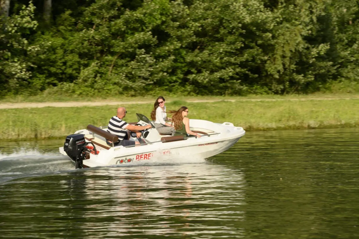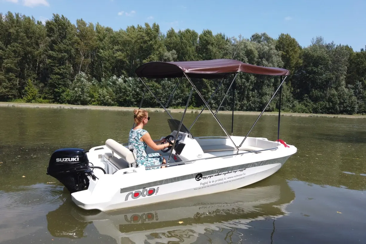 - Max. 5 fő (480 Kg) részére vezetői engedély nélkül vezethető 20 lóerős ROTO 450 S Family hajó bérlése 1 óra időtartamban.