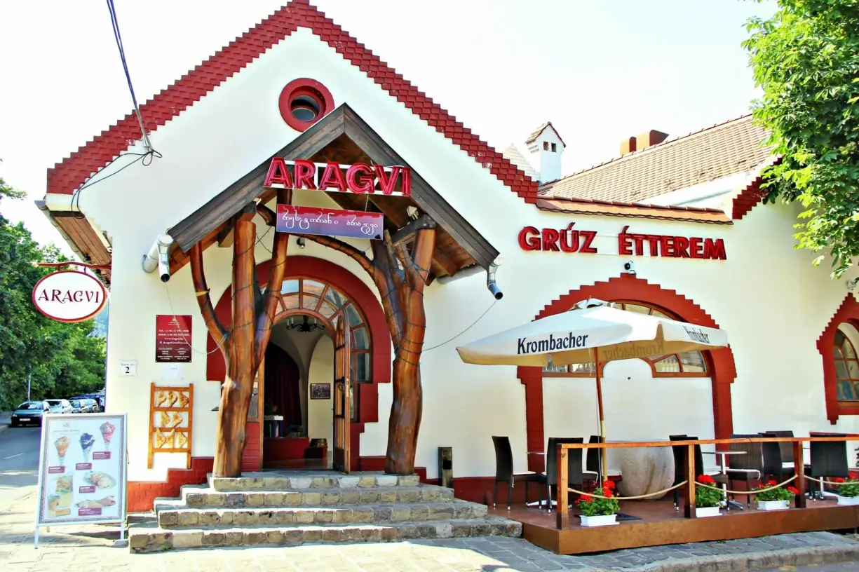 Kucsmacsi, szuluguni, hacsapuri imeruli. Aki azt gondolná, ez egy varázsige, nem jár messze az igazságtól. Mindenesetre varázslatos gasztronómiai utazásban lehet része, ha ellátogat az Aragvi Grúz Étterembe és maga fejti meg a szavak tartalmát. A grúz nép messze földön híres vendégszeretetéről, és ha vendéglátásra kerül sor, bőven van mivel büszkélkedniük. Ízeik nem idegenek a magyarok húshoz szokott gyomra számára, mégis egy mesebeli, zamatokban gazdag, leleményes konyhával ismerkedhet meg a vendég. Az asztalról soha nem hiányozhatnak a zöld fűszernövények, a zöldhagyma, az uborka és a paradicsom. A bárány kiemelt helyet foglal el húsaik között, amelyeket pikáns fűszerezésű paradicsom-, fokhagyma-, vagy szilvamártással szervíroznak. A friss házi sajtok, az illatos lepény és a gyakran keleties hatásról árulkodó édességek fenséges kísérői a grúz lakomának. Az étterem borkínálata szintén figyelemre méltó. A legjobb grúz ételek mellett érdemes kipróbálni a kiváló minőségű, zamatos grúz nedűket is.