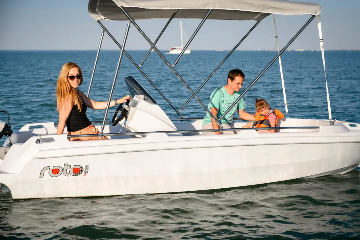 - Max. 5 fő (480 Kg) részére vezetői engedély nélkül vezethető 20 lóerős ROTO 450 S Family hajó bérlése 1 óra időtartamban.